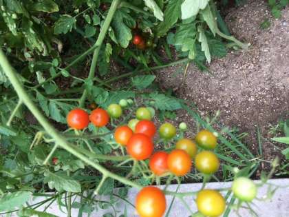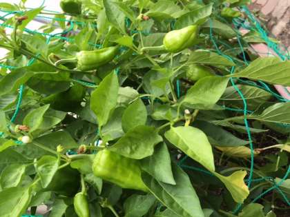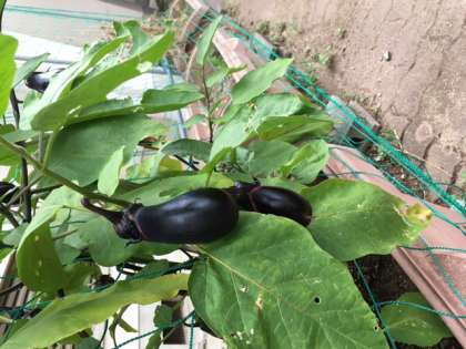 夏の日差しを浴びて学習園の夏野菜がすくすくと成長しています。