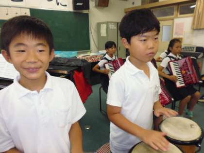 それぞれの楽器でよきハーモニーを奏でようと頑張っています。
