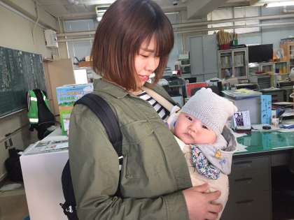 藤崎先生がお子さんと一緒に学校へ来ました。