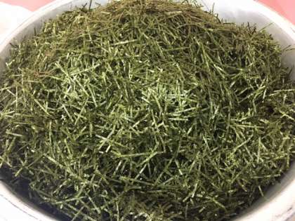 「のりのつくだ煮」は、きざみのりと荒みじんにした干ししいたけを、調味料と一緒に煮詰めています。ごはんに添えていただきます。そのせいかいつもよりも、米飯を良くたべていました。