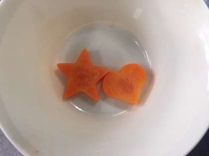 今日は「ラッキーにんじん」といって、にんじんをハートとほしの形に抜いたものを、いくつかいれています。自分の所に「ラッキーにんじん」がはいっていた子供はとても喜んでいます。