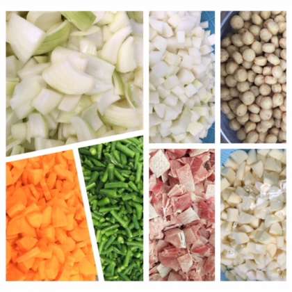 ★「一口がんもとじゃがいもの煮もの」は、一口がんもや豚肉の他にだいこん、にんじん、じゃがいも、三度豆、たまねぎとたくさんの野菜がはいっていました。