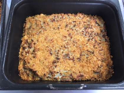 ★「押し麦のグラタン」には、押し麦の他にたまねぎ、マッシュルーム、鶏肉を使用しています。