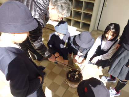 延期になっていた、3年生の七輪体験を2月14日行いました。七輪で火をおこして、炭でかき餅をやきました。炭にひがつくまで、大変苦労しながらも、自分たちの力で焼いて、おいしいかき餅を味わいました。手作りで火をおこし食べることは、とても貴重な体験になりました。