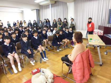 盲導犬と一緒に山本さんが来てくださってお話を聞かせていただきました。