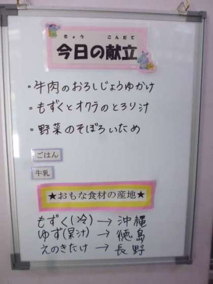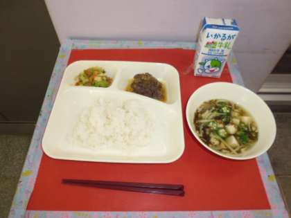 今日の給食のもずくは、沖縄県でとれたもので、とろり汁に入っています。