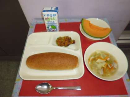 ★6月5日(火)の給食は、  ・カレードリア  ・スープ  ・クインシーメロン  ・ライ麦パン  ・牛乳です。