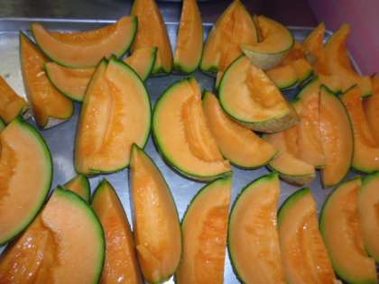 クインシーメロンは、甘くて食べやすいメロンです。網目模様で果肉がオレンジ色をしているのが特徴で、「カテロン」を多く含んでいます。
