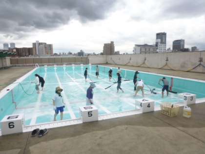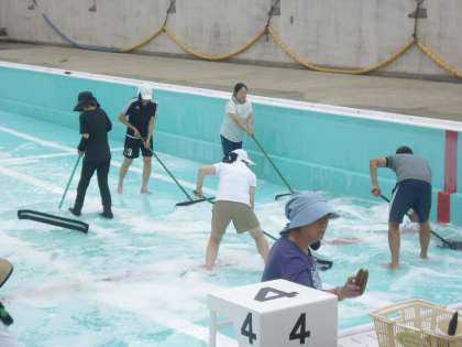 放課後に教職員でプールの清掃を行いました。