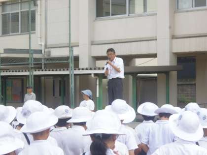 本日の児童集会では、校長先生から「言葉づかい」についてのお話がありました。