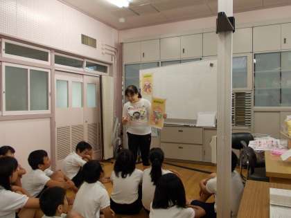 高学年は、打撲、捻挫の際に行う「LICE処置」の方法を、 中学年は、紙芝居を使い、応急処置の方法をふりかえりました。