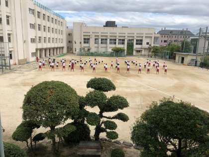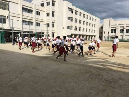 本日は5時間目、6時間目に4年生対象で桜宮高校陸上部による交流授業が行われました。一緒に練習したり、ハンディを設けての高校生のお兄さん、お姉さんとの50m走対決に大盛り上がりの授業となりました。