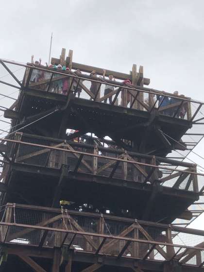 ソラード展望台に登りました。 念のため雨具は着用しましたが、幸い雨は降っていません。
