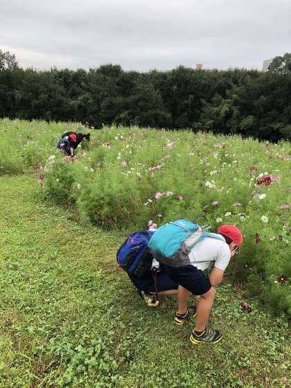 花の丘での自由時間です。晴れ間も少し見えてきました。