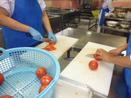 ★「ほたて貝」には、大きな貝柱があり、給食ではこの貝柱を使っています。おいしい味(うま味)がたっぷりあり、シチューやグラタン、スープなどに使われます。今日は「トマトのスープスパゲッティ」に、ほたて貝とゆで汁もはいっており、生のトマトも使われています。