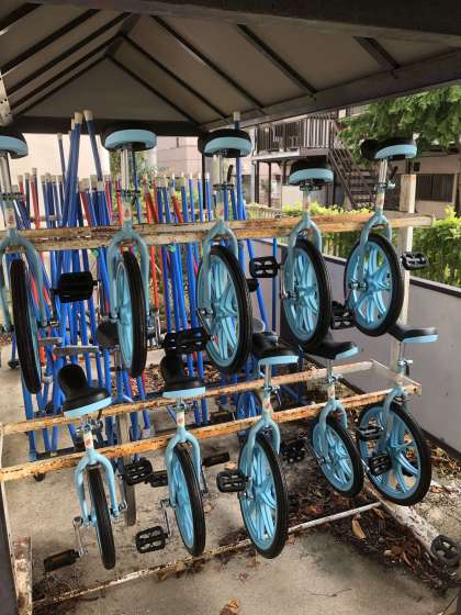 このたび、ベルマークで購入した一輪車10台を新たにPTAよりご寄贈頂きました。長年にわたり、ベルマーク回収にご協力頂いた保護者の皆様、ベルマークの仕分け、集計にご尽力頂いたPTAの皆様、有難うございました!大事に使わせて頂きます。