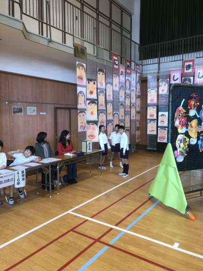 本日、明日と作品展を開催しています。PTA役員の方々が交代で受付をしてくださっています。