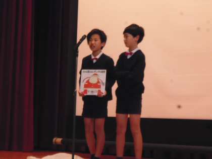 本日の児童集会では、「本の紹介」と「本に関する漫才」がありました。