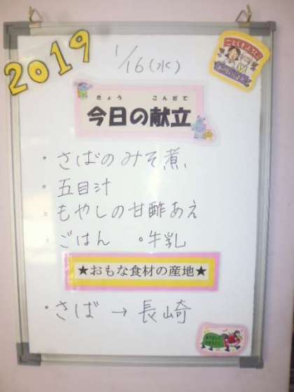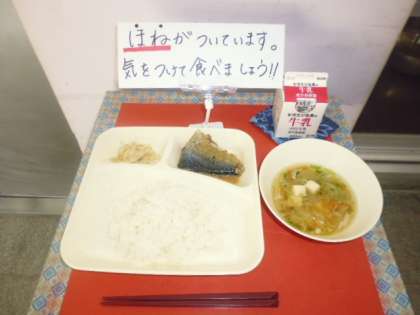 ★1月16日(水)の給食は、 ・さばのみそ煮 ・五目汁 ・もやしの甘酢あえ ・ごはん ・牛乳です。