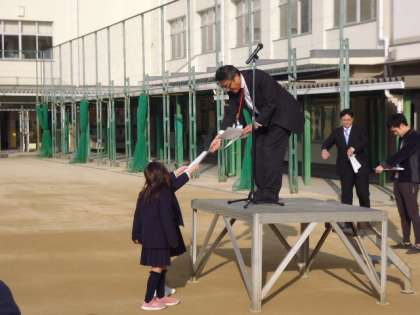 「読書100冊」では2名、「マラソン大会」では、各学年2名の計12名の児童が表彰されました。