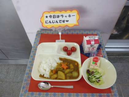 ★今日はチキンカレーライスにラッキーにんじんがはいっていました。