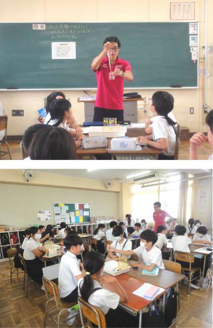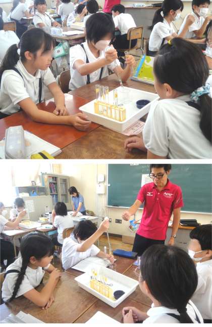 本校には、理科補助員が配置されていて、実験の準備や補助だけでなく子どもたちへの支援もしています。