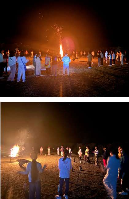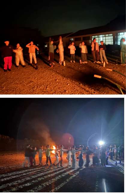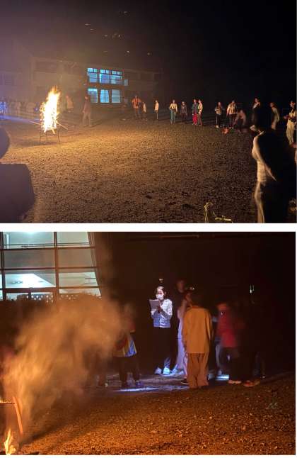 本日の大きな夜のイベントであるキャンプファイヤーが、きれいな星空の下に行われました。