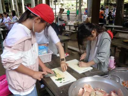 食材を切る係は、食材を洗って野菜などを適当な大きさに切っていきます。注意するのは大根と人参。あまりに大きいと火が通るのに時間がかかり、出来上がりが遅くなります。