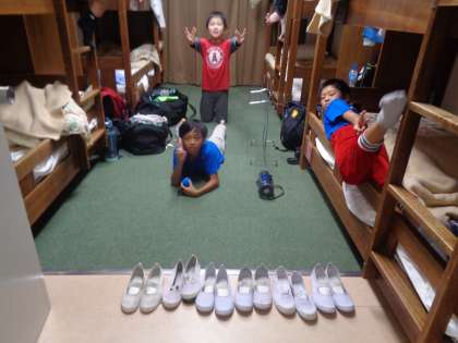 上靴がきれいに並んでいる部屋や、上靴をドアのストッパーにしている部屋もありました。部屋によって様々ですが、夜中に騒ぐことがないのは感心です。