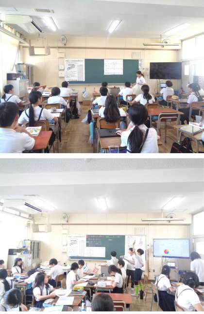 6年生の教室では、算数の学習でデータを整理して、平均値や中央値など、取り上げる数値を選択・整理し、自分なりの考え方をもつ学習です。