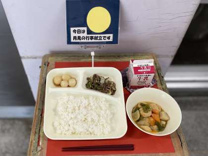 旧暦の8月15日(今年は10月6日)は、「十五夜」や「中秋の名月」といって、月が美しく見える時です。いもやだんごを供えたり、すすきを飾ったりしてお月見をします。