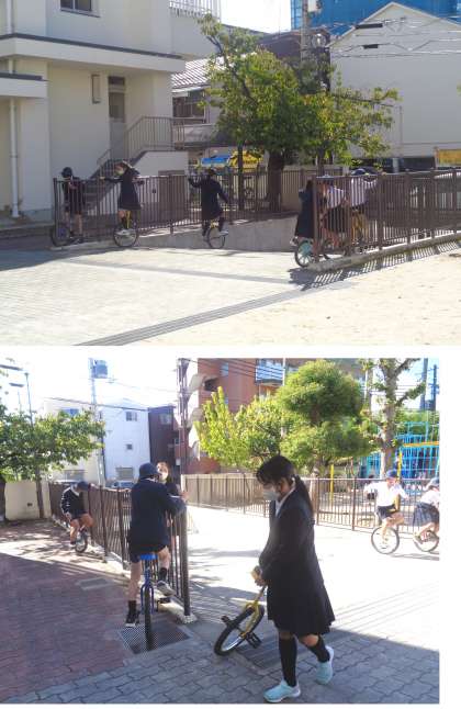 一輪車で遊ぶ子どもたち、桜の木の周りで鬼ごっこをして遊ぶ子どもたち、ドッジボールやキャッチボールに、ジャングルジムやうんていなどでも多くの子どもたちが遊んでいました。