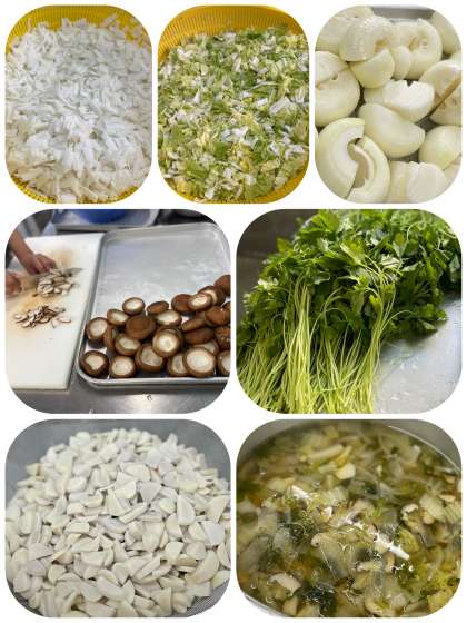 (まめ・ごま・わかめ(海藻)・やさい・さかな・しいたけ(きのこ)・いも)