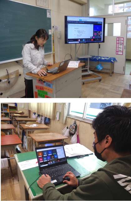 5.6年生の各教室では、6時間の授業時間に合わせてクラスルームを使ったオンラインでの学習を配信しました。体調の悪い人は無理して参加することないようにと伝えていましたが、5.6年生ともほとんどの子どもたちが参加していました。
