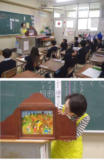 低学年の子どもたちは、特に絵本や紙芝居が好きで、食い入るように聞いていました。