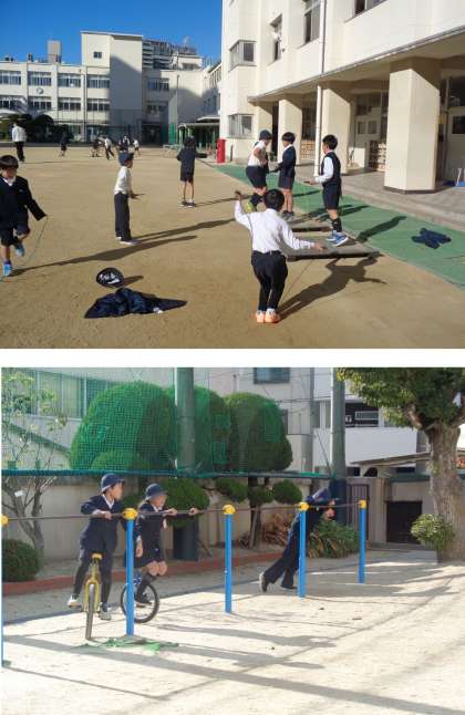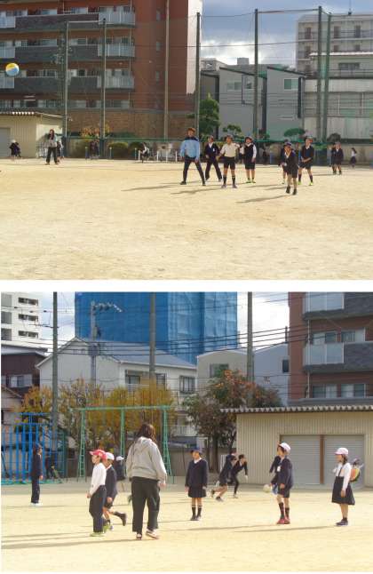 12月4日(木)、今日は冬型の気圧配置が強まり今年一番の寒さとなりましたが、きれいに晴れ渡り、日差しが運動場いっぱいに降り注ぎました。