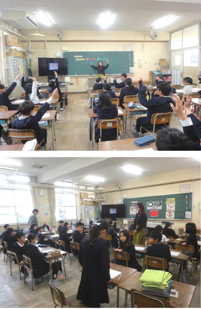 12月11日(木)、3年生の教室では、先日も本校に来られた東都島小学校の栄養教諭の先生による栄養指導が行われました。今日のテーマは「魚についてしろう」です。食品としての魚について、最初に給食に出てくる魚の名前を確かめました。マグロやカツオ・シシャモなどはみんなよく知っていましたが、イトヨリは、知名度が低かったようです。