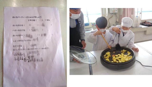 12月18日(木)、昨日のたんぽぽ学級に続いて、2年生でも「おいもパーティー」が行われました。2年生では、予めグループで役割を決めて、自分の役割を果たしながら準備を進めていました。