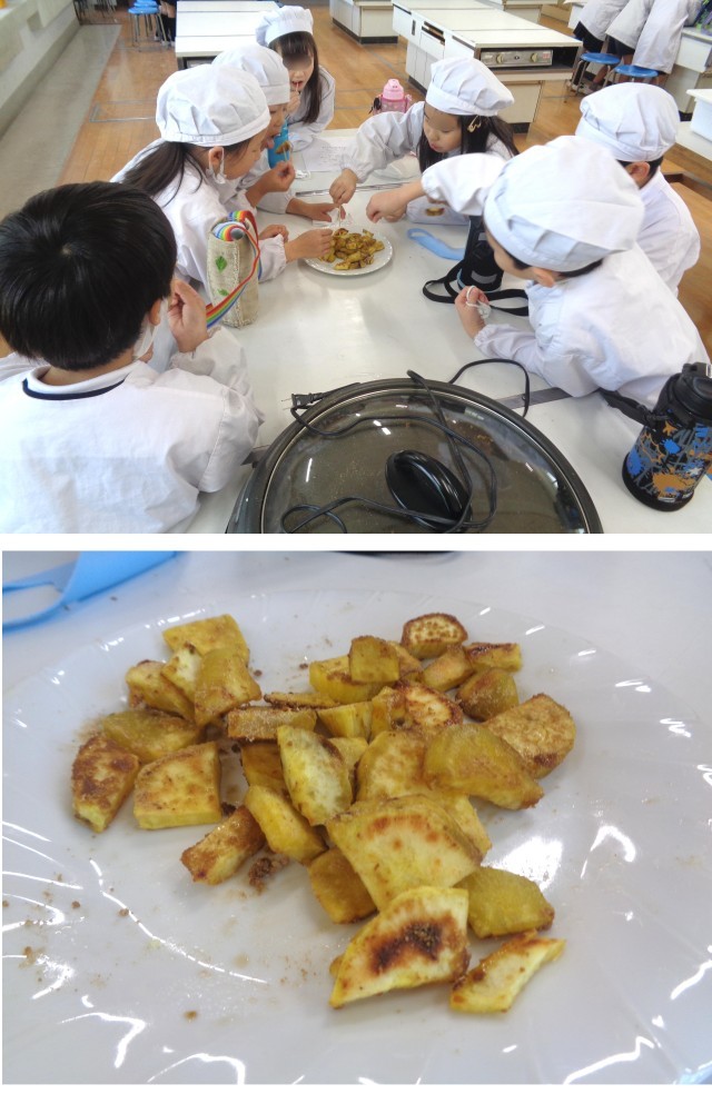 ホットプレートで焼きあがったサツマイモは、甘い香りが漂い、子どもたちは「おいしい!」と声をあげていました。