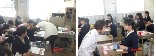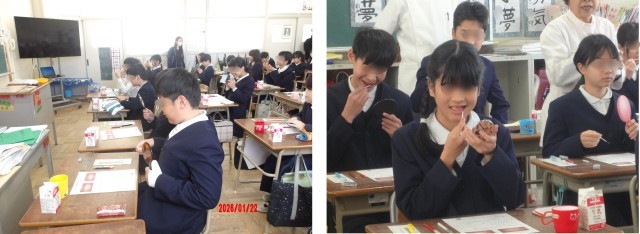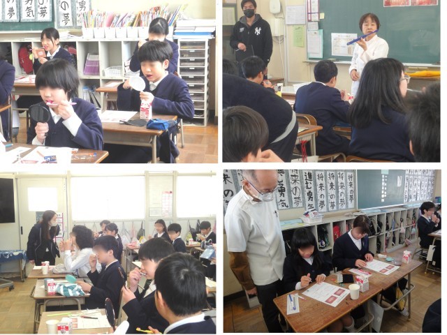 1月22日(木)、毎年6年生を対象に行われている「歯と口の健康教室」が、2.3時間目にクラスごとに実施されました。この日は、教育委員会の歯科衛生士の先生が授業を進めていただき、学校歯科医師の先生にも補助的な支援をしていただきました。