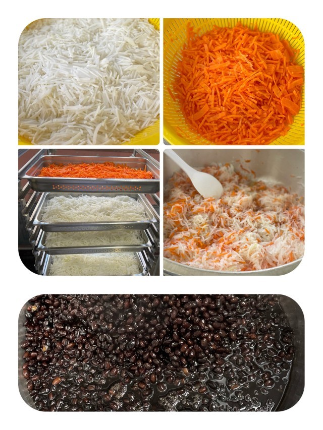 紅白なますは、お祝いの色である紅白をにんじんとだいこんで表しています。