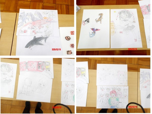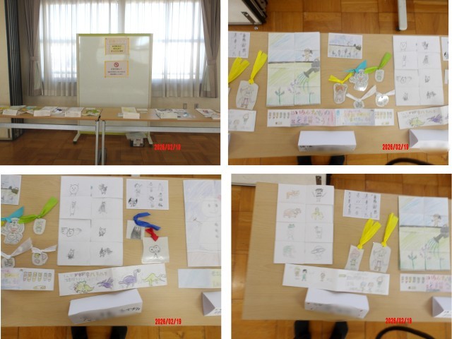 2月17日(火)から20日(金)まで、多目的室では「料理手芸クラブ」「イラスト造形クラブ」「図書クラブ」が、これまでのクラブ活動で制作した作品を展示しています。子どもたちは、クラスごとに時間を見つけて展示物の見学に行っていました。