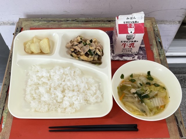 今日の給食では、「豚肉と干しずいきのみそ煮」に使用しています。