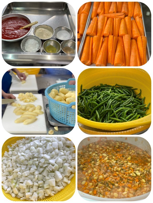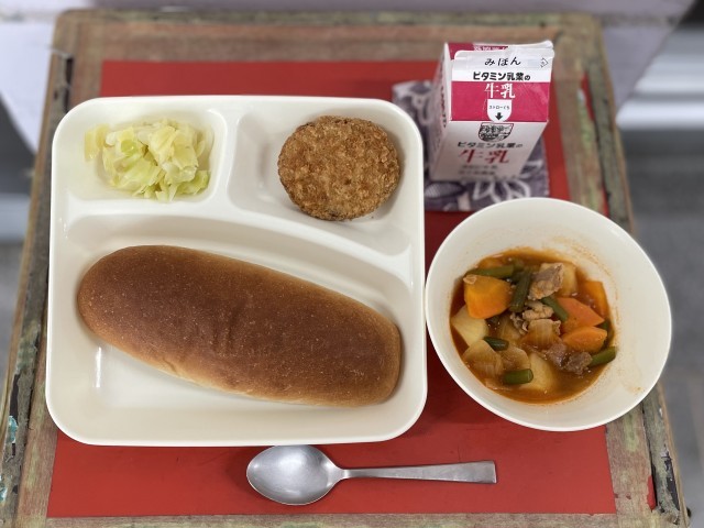 給食のチキンレバーカツは、鶏レバーの他に、鶏肉、たまねぎ、パン粉などを使用し、カレー味をつけて、レバーを食べやすくしています。