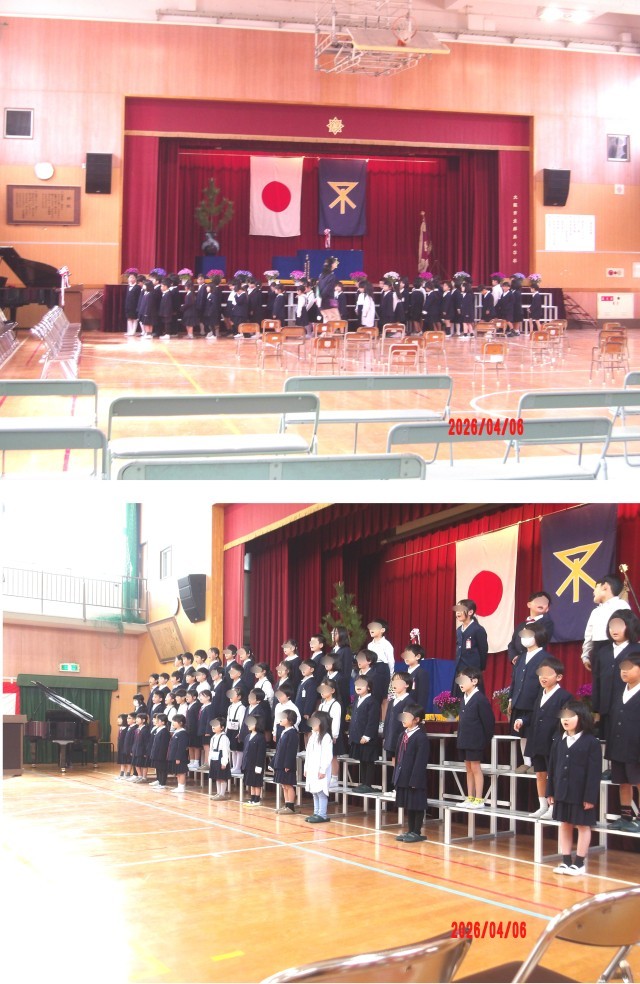 明日は、入学式です。前日の今日、4月6日は教職員が入学式の準備をしました。式場の設営から、1年生教室の準備、掲示物の準備の他、新2年生が入学式で披露する「歓迎のことば」の練習のため登校しました。令和8年度になって初めて子どもたちが学校に来て、いよいよ新年度が始まります。