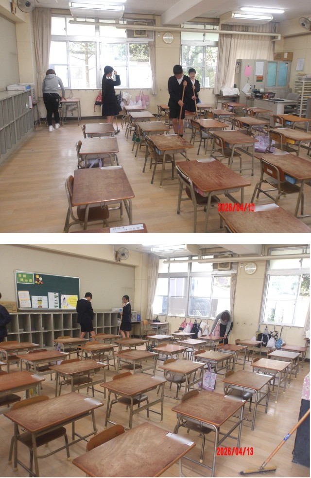 子どもたちが出ていった1年生の教室は、今の期間は6年生がお掃除に来てくれていました。