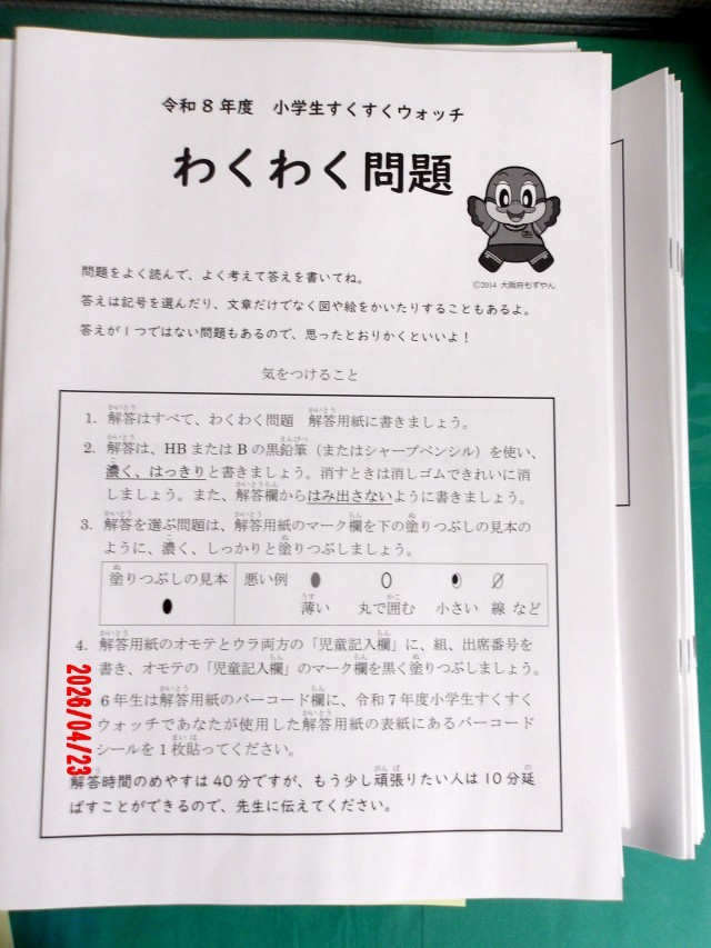 4月23日(木)、6年生が実施する「全国学力・学習状況調査」にあわせて、5年生では大阪府の進める「すくすくウォッチ」に取り組みました。