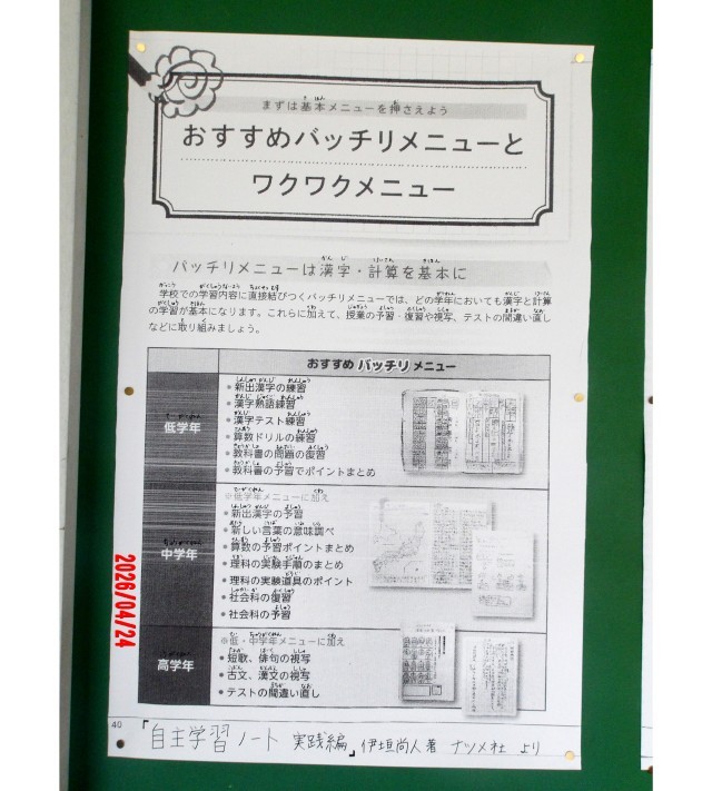 素敵な自主学習ノートは、今後、この掲示板で紹介することになっています。