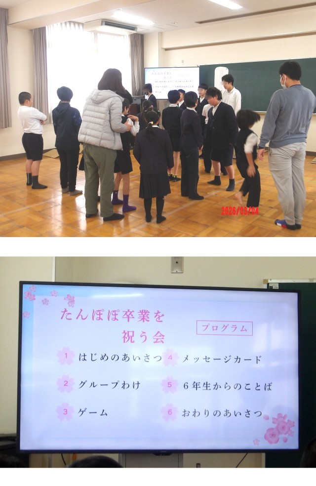 3月4日(水)、今日は「たんぽぽタイム」で「たんぽぽ卒業を祝う会」が多目的室で...