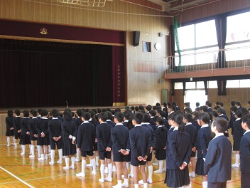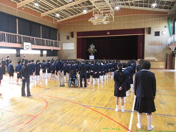開花が早かったため、入学式や始業式には桜の花が残らないのではと心配しましたが、あたたかな日差しのもと桜色の空気に包まれたスタートとなりました。講堂での始業式の後、新たな学級担任とともに新学年始まりの1日を過ごしました。一人一人の胸には、どのような思いがよぎったのでしょうか。今年度も仲間と共に学習や活動に励んでほしいものです。